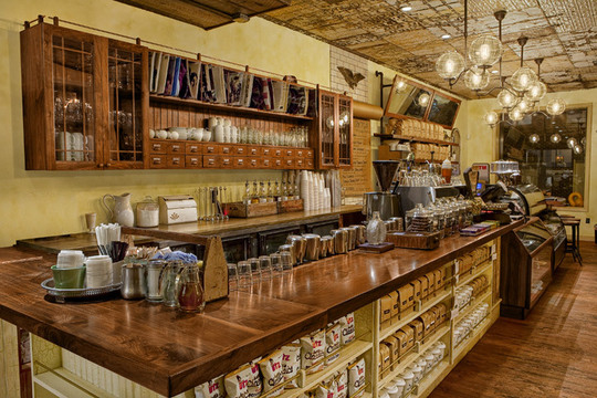I thought this space, The One Shot Coffee Shop in Philly (found via a post on Apartment Therapy), was beautiful.